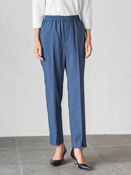 腰まわりは程よくフィットしつつ、裾に向かって細くなるテーパードシルエットで、チュニックやシャツともバランスよく合わせやすい一本です。