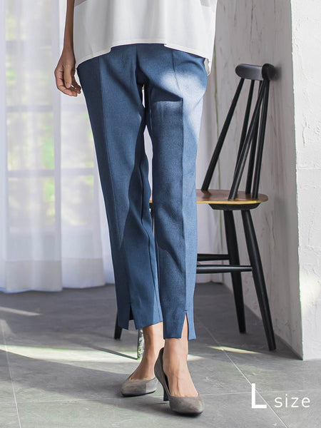 【WEB限定】“美脚デニム見え”裾スリットテーパードパンツ