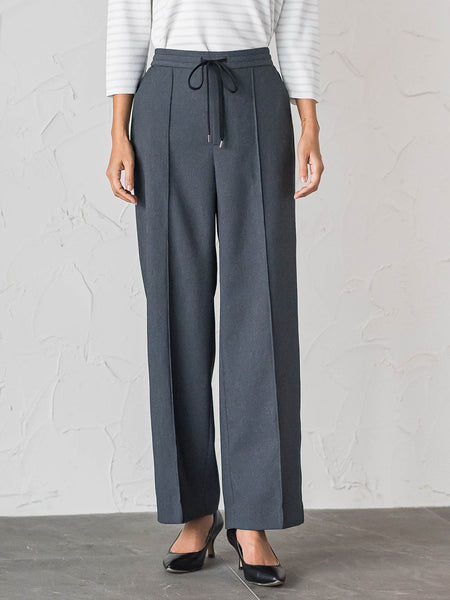 【デザインの特徴】デニムのような表情をもつ薄手素材を使用した、軽やかなワイドパンツ。見た目はカジュアルながら、やわらかな落ち感があり、きれいめにも着こなせる一本です。薄手でありながらストレッチ性があり、動きやすくストレスフリーなはき心地。ウエストは総ゴム仕様で、締めつけ感が少なく、長時間の着用も快適です。程よいワイドシルエットが体のラインを拾いにくく、トップスを選ばずバランスよくスタイリングできるのもポイント。同素材のテーパードパンツとはまた違った、リラックス感のある印象を楽しめます。【機能性】◆Easy Careご自宅でのお手入れが簡単◆ストレッチ◆抗ピリング【素材の特徴】ポリエステル100%でありながらまるでデニムのようなルックスが特徴の素材です。程よいハリ感とドライタッチな風合いで快適なストレッチ性も備えています。デニム素材のデメリットがなくイージーケア性に優れキレイ目に着用していただける素材感となっております。----------------------------------------------------------------洗濯方法家庭洗濯:液温は40℃を限度とし、洗濯機で弱い洗濯ができる。自然乾燥:日陰の吊り干しがよい。アイロン:底面温度160℃を限度としてアイロン仕上げができる。ドライクリーニング:石油系溶剤による弱いドライクリーニングができる。----------------------------------------------------------------■モデル身長 164cm/着用サイズ M※画像の商品はサンプルとなりますので実際の商品と仕様、加工、サイズが若干異なる場合がございます。※お客様のモニター環境により実際のお色と多少異なる場合がございます。※撮影状況や光の当たり具合により、色合いが異なって見える場合がございます。※商品タグに記載されたサイズはヌードサイズです。実際の商品のサイズは商品情報の実寸をご確認ください。関連ワード:la.f… ラ エフ レディース 新作 大人コーデ シンプル フォーマル モード マニッシュ 2026春夏 2026SS 春夏 夏物 夏服