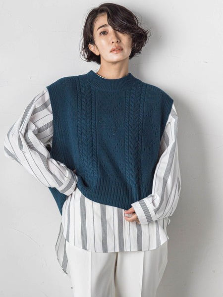 【デザインの特徴】上質なHAMILTONウール100%で編み上げたニットジレ。ふくらみのある糸の特徴を生かしたニットらしいケーブル柄。柔らかく軽やかに冬のコーディネイトを楽しめるアイテムです。【素材の特徴】希少性が高い羊毛として世界的に有名なハミルトンウールを100%使用。上質な肌触りでウール特有のチクチク感も抑えられ、ノンストレスに着用いただけます。----------------------------------洗濯方法家庭洗濯:液温は40℃を限度とし、手洗いが出来る。自然乾燥:日蔭の平干しが良い。アイロン:底面温度150℃を限度としてアイロン仕上げができる。ドライクリーニング:石油系溶剤による弱いドライクリーニングができる。----------------------------------■モデル1 身長 173cm/着用サイズ 9号■モデル2 身長 171cm/着用サイズ 9号※画像の商品はサンプルとなりますので実際の商品と仕様、加工、サイズが若干異なる場合がございます。※お客様のモニター環境により実際のお色と多少異なる場合がございます。※撮影状況や光の当たり具合により、色合いが異なって見える場合がございます。※商品タグに記載されたサイズはヌードサイズです。実際の商品のサイズは商品情報の実寸をご確認ください。関連ワード:la.f… ラ エフ 2024秋冬 2024AW 冬 冬服 ニット ウール 無地 ノースリーブ シンプル フォーマル モード マニッシュ ジレ 10~15度におすすめ