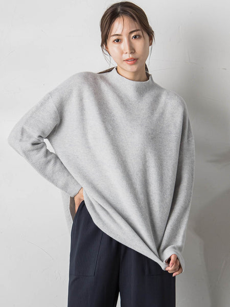 首元をすっきりと見せるハイネックが、品の良いか顔回りを演出します。