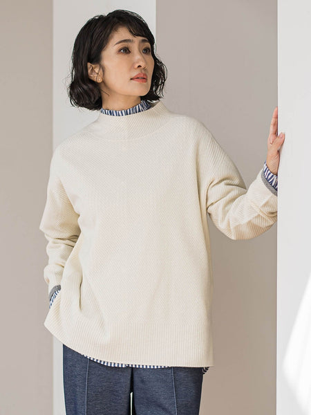 【デザインの特徴】非常に軽量で温かい、毎年人気の上質ウール、CHESSニット。首元をすっきりと見せるハイネックが、品の良い顔回りを演出します。今シーズンは、表情感をあたえつつスッキリとしたバイアス組織にし、ニットらしいあたたかみを感じる印象に仕上げています。程よくゆとりのあるサイズ感と、すとんとしたシルエットで、あらゆるボトムにマッチする絶妙なサイズ感を設定しています。【機能性】◆Washableご自宅での手洗いが可能【素材の特徴】国内トップクラスの紡績メーカーの糸を使用。メリノ種の中でも特に上質なジロンラムの17.5マイクロンを使用した細番手の紡毛糸。膨らみのある原毛と滑らかな光沢の原毛をミックスし、ウール本来の膨らみ、なめらかなタッチ、ソフト感をバランス良くブレンドしています。ハイゲージでも軽くて柔らかく、保温性に優れた素材です。12Gという適番で編み上げましたのでカジュアルにならず上質な仕上がりです。----------------------------------------------------------------洗濯方法家庭洗濯:液温は30℃を限度とし、手洗いができる。自然乾燥:日陰の平干しがよい。アイロン:底面温度160℃を限度としてアイロン仕上げができる。ドライクリーニング:石油系溶剤による弱いドライクリーニングができる。----------------------------------------------------------------※画像の商品はサンプルとなりますので実際の商品と仕様、加工、サイズが若干異なる場合がございます。※お客様のモニター環境により実際のお色と多少異なる場合がございます。※撮影状況や光の当たり具合により、色合いが異なって見える場合がございます。※商品タグに記載されたサイズはヌードサイズです。実際の商品のサイズは商品情報の実寸をご確認ください。関連ワード:la.f… ラ エフ レディース 新作 大人コーデ シンプル フォーマル モード マニッシュ 2025秋冬 2025AW 秋冬 秋物 秋服