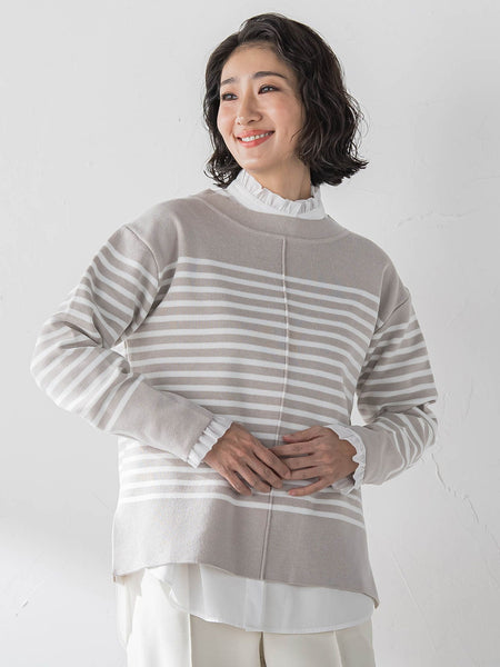 【デザインの特徴】ミラノリブならではの上品な編み地に、ほんのり“スウェットライク”なリラックス感を加えたクルーネックニット。ウールアクリルの軽やかさに、フロントのピンタックでさりげない立体感をプラス。淡い春色が装いを明るく見せ、冬?春へスムーズにつなぐ一枚です。きれいめにもカジュアルにも馴染む万能さで、デイリーに気軽に着られるアイテム。【素材の特徴】ウールのあたたかさと、アクリルの軽さ・扱いやすさを掛け合わせた混紡糸。ふくらみのある風合いで肌あたりがやさしく、軽量なのにしっかり暖かいのが特徴です。型崩れしにくく、ご自宅でのお手入れもしやすい、デイリー使いにぴったりの素材です。----------------------------------------------------------------洗濯方法家庭洗濯:液温は40℃を限度とし、手洗いができる。自然乾燥:日陰の平干しがよい。アイロン:底面温度120℃を限度としてアイロン仕上げができる。ドライクリーニング:石油系溶剤による弱いドライクリーニングができる。----------------------------------------------------------------※画像の商品はサンプルとなりますので実際の商品と仕様、加工、サイズが若干異なる場合がございます。※お客様のモニター環境により実際のお色と多少異なる場合がございます。※撮影状況や光の当たり具合により、色合いが異なって見える場合がございます。※商品タグに記載されたサイズはヌードサイズです。実際の商品のサイズは商品情報の実寸をご確認ください。関連ワード:la.f… ラ エフ レディース 新作 大人コーデ シンプル フォーマル モード マニッシュ 2025秋冬 2025AW 秋冬 秋物 秋服