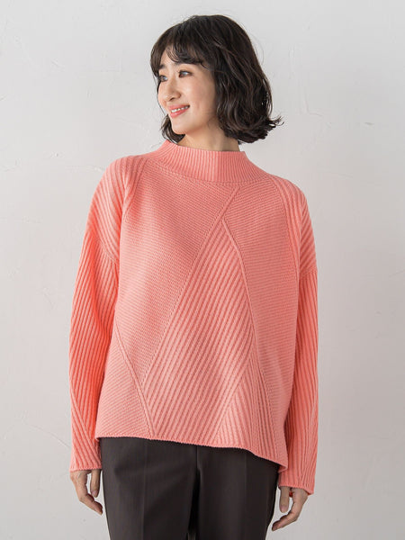 【デザインの特徴】ヘリンボーンのようにジグザグ柄に編み立てたウール混ニット。凹凸のある表情が程よい存在感を生み、シンプルでも着映える一枚です。首元はすっきり見えるモックネック、シルエットは少しゆるめで大人の抜け感をプラス。厚すぎず軽やかな着心地で、デイリーにもきれいめにも合わせやすい万能ニットです。【素材の特徴】ウールの温かさとアクリルの軽さを兼ね備えたRITZ糸を使用。細番手ならではのなめらかさと上品な光沢があり、ふくらみのある柔らかな風合いが魅力です。繊細で均一な編み目が美しく、肌あたりもやさしいためデイリーに快適。薄手でもしっかり暖かく、きれいめニットにぴったりの素材です。----------------------------------------------------------------洗濯方法家庭洗濯:液温は40℃を限度とし、手洗いができる。自然乾燥:日陰の平干しがよい。アイロン:底面温度120℃を限度としてアイロン仕上げができる。ドライクリーニング:石油系溶剤による弱いドライクリーニングができる。----------------------------------------------------------------※画像の商品はサンプルとなりますので実際の商品と仕様、加工、サイズが若干異なる場合がございます。※お客様のモニター環境により実際のお色と多少異なる場合がございます。※撮影状況や光の当たり具合により、色合いが異なって見える場合がございます。※商品タグに記載されたサイズはヌードサイズです。実際の商品のサイズは商品情報の実寸をご確認ください。関連ワード:la.f… ラ エフ レディース 新作 大人コーデ シンプル フォーマル モード マニッシュ 2025秋冬 2025AW 秋冬 秋物 秋服