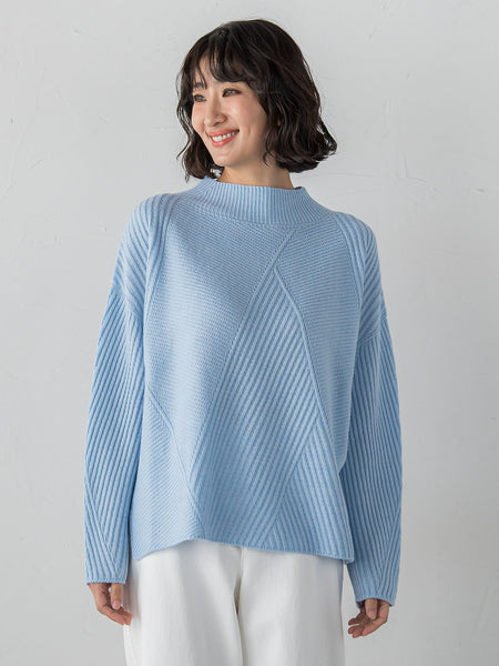 【デザインの特徴】ヘリンボーンのようにジグザグ柄に編み立てたウール混ニット。凹凸のある表情が程よい存在感を生み、シンプルでも着映える一枚です。首元はすっきり見えるモックネック、シルエットは少しゆるめで大人の抜け感をプラス。厚すぎず軽やかな着心地で、デイリーにもきれいめにも合わせやすい万能ニットです。【素材の特徴】ウールの温かさとアクリルの軽さを兼ね備えたRITZ糸を使用。細番手ならではのなめらかさと上品な光沢があり、ふくらみのある柔らかな風合いが魅力です。繊細で均一な編み目が美しく、肌あたりもやさしいためデイリーに快適。薄手でもしっかり暖かく、きれいめニットにぴったりの素材です。----------------------------------------------------------------洗濯方法家庭洗濯:液温は40℃を限度とし、手洗いができる。自然乾燥:日陰の平干しがよい。アイロン:底面温度120℃を限度としてアイロン仕上げができる。ドライクリーニング:石油系溶剤による弱いドライクリーニングができる。----------------------------------------------------------------※画像の商品はサンプルとなりますので実際の商品と仕様、加工、サイズが若干異なる場合がございます。※お客様のモニター環境により実際のお色と多少異なる場合がございます。※撮影状況や光の当たり具合により、色合いが異なって見える場合がございます。※商品タグに記載されたサイズはヌードサイズです。実際の商品のサイズは商品情報の実寸をご確認ください。関連ワード:la.f… ラ エフ レディース 新作 大人コーデ シンプル フォーマル モード マニッシュ 2025秋冬 2025AW 秋冬 秋物 秋服