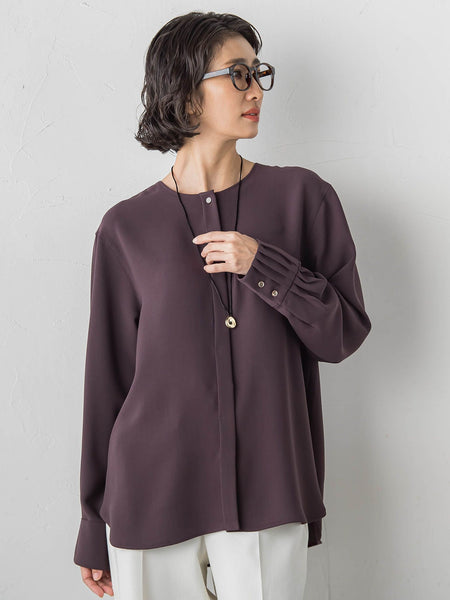 【大きいサイズ】メランジツイルノーカラーブラウス