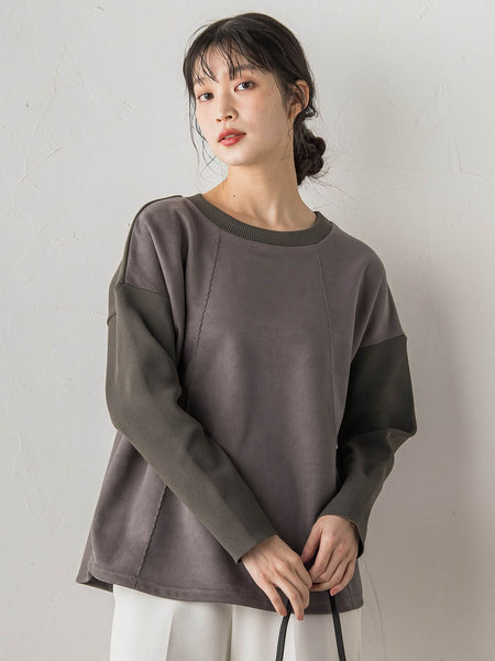 秋冬らしい深みと上品さを感じるフェイクスエードを使用した、大人見えプルオーバー。なめらかな表面感と軽やかなタッチ、そしてストレッチの効いた快適な着心地が魅力です。フロントには、波を描くように入れた2本の変形切り替えをデザイン。シンプルになりがちな冬トップスに、さりげない立体感をプラス。袖とバックヨークはニットで切り替え、異素材ならではの奥行きと、動きやすさを両立。やわらかく体に馴染む着用感で、デイリーに活躍する一枚です。同シリーズのスカート (3807-59013) と合わせれば、セットアップとしても着用可能。ワントーンでのスタイリングは、より洗練された表情に仕上がります。----------------------------------------------------------------洗濯方法家庭洗濯:液温は40℃を限度とし、手洗いができる。自然乾燥:日蔭の吊り干しがよい。アイロン:底面温度120℃を限度としてアイロン仕上げができる。ドライクリーニング:石油系溶剤による弱いドライクリーニングができる。----------------------------------------------------------------※画像の商品はサンプルとなりますので実際の商品と仕様、加工、サイズが若干異なる場合がございます。※お客様のモニター環境により実際のお色と多少異なる場合がございます。※撮影状況や光の当たり具合により、色合いが異なって見える場合がございます。※商品タグに記載されたサイズはヌードサイズです。実際の商品のサイズは商品情報の実寸をご確認ください。関連ワード:Droitelautreamont ドロワットロートレアモン レディース 新作 トレンド 大人フェミニン 2025秋冬 2025AW 秋冬 冬物 冬服 カットソー ポリエステル ポリウレタン クルーネック 長袖