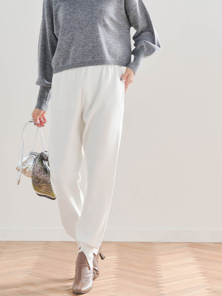 絶妙なテーパードシルエットで、ニットパンツでも美脚効果があり、