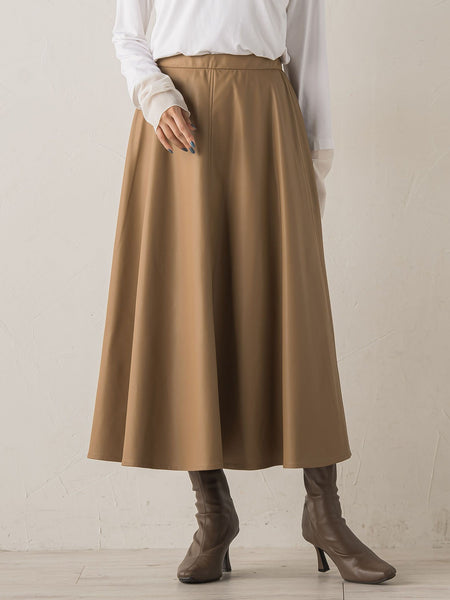 上質な表情と落ち感のある素材でシンプルながらも滑らかなフレアシルエットを演出してくれる1枚です。