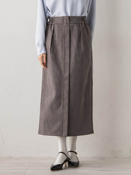 しっとりとした品のある表情が魅力のジャージースエードを使用した、ナローシルエットの一枚。高級感のあるルックスながらストレッチがしっかり効いており、動くたびに体にほどよくフィットしてくれる快適な着心地です。センターフロントには前立て風の切り替えラインを配し、縦長シルエットを強調。すっきりとした細身のデザインながら、後ろスリットとストレッチの相性のよさで足さばきも軽やかに。ウエスト後ろのみゴム仕様で“きちんと見え×ラク”を両立しています。 同素材のトップス (3807-59013) と合わせれば、セットアップとしても着用可能。ワントーンでまとめることで、より洗練されたムードを楽しめます。ニットやブラウス、ショート丈トップスとも相性がよく、オン・オフで着回せる万能な一枚です。----------------------------------------------------------------洗濯方法家庭洗濯:液温は40℃を限度とし、手洗いができる。自然乾燥:日蔭の吊り干しがよい。アイロン:底面温度120℃を限度としてアイロン仕上げができる。ドライクリーニング:石油系溶剤による弱いドライクリーニングができる。----------------------------------------------------------------※画像の商品はサンプルとなりますので実際の商品と仕様、加工、サイズが若干異なる場合がございます。※お客様のモニター環境により実際のお色と多少異なる場合がございます。※撮影状況や光の当たり具合により、色合いが異なって見える場合がございます。※商品タグに記載されたサイズはヌードサイズです。実際の商品のサイズは商品情報の実寸をご確認ください。関連ワード:Droitelautreamont ドロワットロートレアモン レディース 新作 トレンド 大人フェミニン 2025秋冬 2025AW 秋冬 冬物 冬服 カットソー ポリエステル ポリウレタン クルーネック 長袖 ポリエステル ゴム