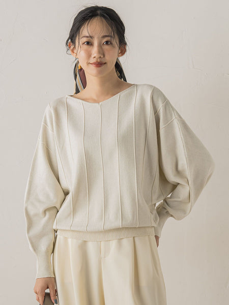 上品なラメ感とタテのラインがポイントのニットプルオーバー。デコルテラインをきれいに見せてくれるVネックや、ボリュームの出過ぎないドルマンスリーブで華奢見えを叶えてくれます。 程良い厚みの素材感で、スカートからワイドパンツまできれいめな女性らしいスタイルに仕上げてくれる1枚です。----------------------------------------------------------------洗濯方法家庭洗濯:液温は30℃を限度とし、手洗いができる。自然乾燥:日蔭の平干しがよい。アイロン:底面温度120℃を限度としてアイロン仕上げができる。ドライクリーニング:石油系溶剤による弱いドライクリーニングができる。----------------------------------------------------------------※画像の商品はサンプルとなりますので実際の商品と仕様、加工、サイズが若干異なる場合がございます。※お客様のモニター環境により実際のお色と多少異なる場合がございます。※撮影状況や光の当たり具合により、色合いが異なって見える場合がございます。※商品タグに記載されたサイズはヌードサイズです。実際の商品のサイズは商品情報の実寸をご確認ください。関連ワード:Droitelautreamont ドロワットロートレアモン レディース 新作 トレンド 大人フェミニン 2025秋冬 2025AW 秋冬 秋物 秋服 ニット ポリエステル レーヨン ナイロン Vネック 長袖