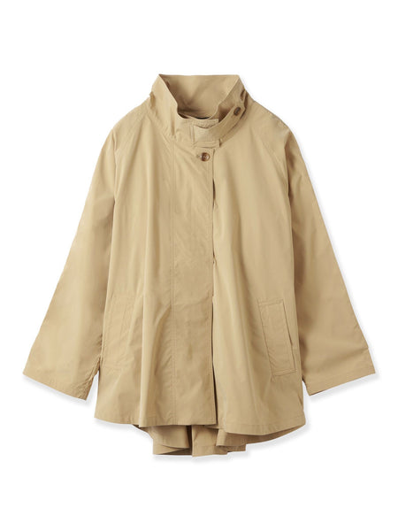 テントラインを描いて、構築的なフォルムがモダンで印象的なコートは、水をはじく撥水加工と花粉汚れ対策機能を付与したテキスタイルを使用しています。