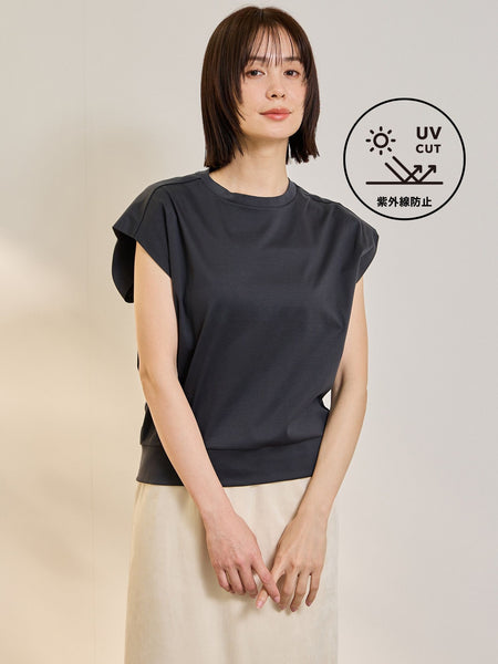 《予約販売》先行予約特典10%OFF予約期間:3/13(金)12:00〜3/30(月)18:00お渡し予定:5月下旬随時発送※ご予約のご状況により生産中止の可能性もございます。【着るUVケア】シリーズ同生地でデザインTシャツ(4107-63168)、ペプラムプルオーバー(4107-63067)フライス素材で、フライスワンピース(4101-63072)、フライスTシャツ(4107-63179)※本製品は日焼けを完全に防ぐものではありません。●POINT紫外線が気になる季節に、頼れる一枚。コットン100%でありながら、特別な加工を施した 素材 を使用し、肌にやさしい着心地と紫外線対策を同時に叶える高機能トップスが登場しました。上質なコーマ糸を使用したスムースは、思わず触りたくなるほどのなめらかさと美しい光沢が魅力。シルクのような上品な表情で、カジュアルすぎない大人のTシャツスタイルを楽しめます。紫外線をカットするUVケア機能で日常の外出や通勤、屋外レジャーでも、肌を守りながら快適に着られる安心感があります。春夏はもちろん、長い季節で活躍する実用性の高さもポイント。デザインは、肩をふわりと包むような広めのショルダーラインが印象的。気になる二の腕を自然にカバーしつつ、ほどよい立体感でスタイルアップ効果も期待できます。裾は少し太めの切り替えでまとまりが良く、ボトムに合わせてバランスよく着られるのも魅力です。シンプルなのにひと味違う、機能もデザイン性もそろった万能トップス。UVケア × 上質スムース × 大人のこなれ感 を一枚で叶える、春夏のワードローブに加えたいマストアイテムです。----------------------------------透け感:淡色のみややあり厚さ: 普通伸縮性:あり裏地: なしポケット: なし--------------------------------------------------------------------------------------------------洗濯方法家庭洗濯:液温は40℃を限度とし、手洗いができる。自然乾燥:日陰の吊り干しがよい。アイロン:底面温度120℃を限度としてアイロン仕上げができる。ドライクリーニング:石油系溶剤による弱いドライクリーニングができる。----------------------------------------------------------------■モデル身長 165cm 着用サイズ M※画像の商品はサンプルとなりますので実際の商品と仕様、加工、サイズが若干異なる場合がございます。※お客様のモニター環境により実際のお色と多少異なる場合がございます。※撮影状況や光の当たり具合により、色合いが異なって見える場合がございます。関連ワード:ketty ケティ レディース 新作 大人コーデ 2026春夏 2028SS 春夏 春物 春服 Tシャツ カットソー コットン クルーネック 無地 半袖 オフィス 旅行 デート 通勤 ホテルディナー アフタヌーンティー