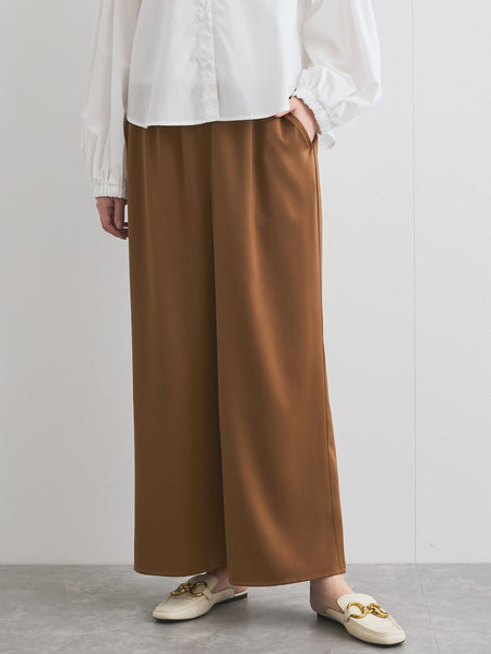 ●POINTタイムレスに着用できるワイドシルエットのサテンパンツです。ウエストはゴム仕様で内側にコードがついており、サイズ調整が可能です。ラクチンな着心地なのに、キレイ見えも叶う良い所取りな一品です。ウエスト内側にコードをいれることで、オンタイムコーディネートのノイズにならないように設計されています。単品力の高いワイドパンツは、春夏シーズンはカットソーやブラウスにあわせて、秋冬シーズンには毛足の長いニットと合わせたりと着こなしの幅がひろがります。●FABRIC華やかな光沢感があり、しなやかでドレープ性が高く、滑らかな肌触りが特徴のサテン織りのテキスタイルを使用しています。程よくハリ感があるので、ボディラインにまとわりつかないように、程よくハリ感をもたせています。●COORDINATE----------------------------------透け感:淡色のみややあり厚さ: やや薄い伸縮性:なし裏地: ありポケット: あり--------------------------------------------------------------------------------------------------洗濯方法家庭洗濯:液温は30℃を限度とし、洗濯機で非常に弱い洗濯ができる。自然乾燥:日蔭の吊り干しがよい。アイロン:底面温度120℃を限度としてアイロン仕上げができる。ドライクリーニング:石油系溶剤による弱いドライクリーニングができる。----------------------------------------------------------------■モデル身長 171cm 着用サイズ M※画像の商品はサンプルとなりますので実際の商品と仕様、加工、サイズが若干異なる場合がございます。※お客様のモニター環境により実際のお色と多少異なる場合がございます。※撮影状況や光の当たり具合により、色合いが異なって見える場合がございます。関連ワード:ketty ケティ レディース 新作 大人コーデ 2025春夏 2025SS 春夏 春物 春服 イージーパンツ ワイドルーズ ポリエステル サテン 無地 ゴム オフィス 通勤 ホテルディナー アフタヌーンティー ウォッシャブル