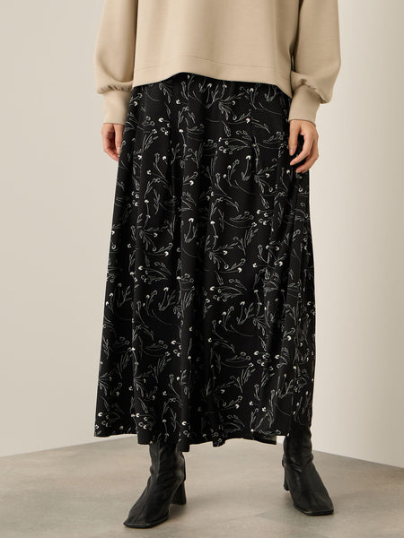 滑らかなテクスチャーできれいな落ち感が特徴のテキスタイルを使用したフラワー柄のスカートライクパンツです。