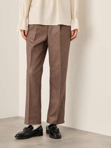 ●POINT肌側に細かな繊維を立たせる起毛加工を施して心地よい肌触りのファブリックを使用しています。起毛部分に空気を含むため暖かさを感じやすいのが特徴です。ウールツィードのような印象に近づけながら、スティックシルエットなのにストレッチが効いたバックゴム仕様で履き心地はイージーです。センタープレスでベルトループがついているので、キレイ目なのにストレスフリーなスタイルが叶います。ブラック系、グレー系はモノトーン配色のチェック柄、ブラウン系はガンクラブチェック柄です。同素材を使用したアイテムにブラッシュバックストレッチイージースカート(4111-57166)がございます。----------------------------------透け感:なし厚さ: やや厚い伸縮性:あり裏地: なしポケット: あり----------------------------------■モデル身長 165cm 着用サイズ M※画像の商品はサンプルとなりますので実際の商品と仕様、加工、サイズが若干異なる場合がございます。※お客様のモニター環境により実際のお色と多少異なる場合がございます。※撮影状況や光の当たり具合により、色合いが異なって見える場合がございます。関連ワード:ketty ケティ レディース 新作 大人コーデ 2025秋冬 2025AW 秋冬 秋物 秋服 イージーパンツ ポリエステル ゴム オフィス 旅行 デート 通勤 ホテルディナー アフタヌーンティー