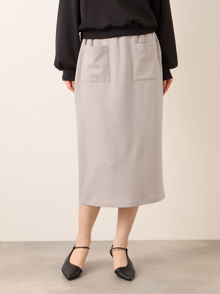 ●POINTシンプルながら洗練された印象を与える、ライトダンボール素材のタイトスカート。身体のラインを拾いすぎない程よいストレートシルエットで、ウエストは総ゴム仕様のためラクな着用感ときちんと見えを両立しています。パッチポケットを配置し、さりげないアクセントをプラス。サイドにはスリットを入れることで足さばきが良く、動きやすさにも配慮されたデザインです。素材にはライトダンボールを使用し、春夏に快適な薄さと、ダンボールニット特有のハリ感のバランスが絶妙。軽やかで爽やかな着心地でありながら、体型が響きにくい上質な生地感に仕上がっています。ウエストインのコーデも美しく決まり、Tシャツやブラウスなど合わせるアイテムを選ばない万能さが魅力。スニーカー合わせでカジュアルにも、サンダルやパンプスでキレイめにも着こなせる、幅広いシーンに対応する一枚です。オン・オフ問わず使いやすいラインと快適な着心地で、春夏のワードローブに追加したいおすすめアイテムです。※オフホワイトのみ裏地あり----------------------------------透け感:淡色のみややあり厚さ: 普通伸縮性:あり裏地: なしポケット: あり--------------------------------------------------------------------------------------------------洗濯方法家庭洗濯:液温は40℃を限度とし、手洗いができる。自然乾燥:日陰の吊り干しがよい。アイロン:底面温度120℃を限度としてアイロン仕上げができる。ドライクリーニング:石油系溶剤による弱いドライクリーニングができる。----------------------------------------------------------------■モデル身長 165cm 着用サイズ M※画像の商品はサンプルとなりますので実際の商品と仕様、加工、サイズが若干異なる場合がございます。※お客様のモニター環境により実際のお色と多少異なる場合がございます。※撮影状況や光の当たり具合により、色合いが異なって見える場合がございます。関連ワード:ketty ケティ レディース 新作 大人コーデ 2026春夏 2026SS 春夏 春物 春服 ポリエステル 無地 ゴム タイトスカート オフィス 旅行 デート 通勤 ホテルディナー アフタヌーンティー
