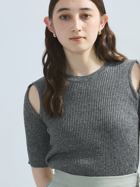 ショルダーラインにスリットを入れたスキンコンシャスなニットトップスです。