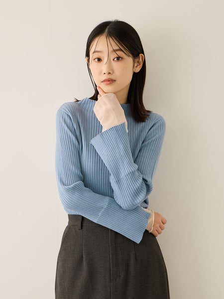 ボディラインに寄り添うシルエットなので、タックインのスタイルやボリュームのあるボトムスとあわせていただくのがおすすめです。
