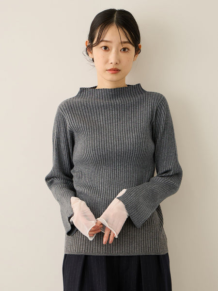 ●POINT袖先カフ部分をセミシアのテキスタイルで切り替え、インナーレイヤードしたようなデザインのニットプルオーバーです。ハイゲージなので、秋口には一枚着として、気温が落ち着いてきたらジャケットやブルゾンの袖口からシアーカフをのぞかせてニュアンス感のある着こなしに。インナーを別で用意することなくレイヤリングが楽しめるコスパの良いハイゲージニットです。ボディラインに寄り添うシルエットなので、タックインのスタイルやボリュームのあるボトムスとあわせていただくのがおすすめです。----------------------------------透け感:なし厚さ: 普通伸縮性:あり裏地: なしポケット: あり--------------------------------------------------------------------------------------------------洗濯方法家庭洗濯:液温は40℃を限度とし、手洗いができる。自然乾燥:日陰の平干しがよい。アイロン:底面温度120℃を限度としてアイロン仕上げができる。ドライクリーニング:石油系溶剤による弱いドライクリーニングができる。----------------------------------------------------------------■モデル身長 165cm 着用サイズ M※画像の商品はサンプルとなりますので実際の商品と仕様、加工、サイズが若干異なる場合がございます。※お客様のモニター環境により実際のお色と多少異なる場合がございます。※撮影状況や光の当たり具合により、色合いが異なって見える場合がございます。関連ワード:ketty ケティ レディース 新作 大人コーデ 2025秋冬 2025AW 秋冬 秋物 秋服 ニット ポリエステル アクリル ウール ナイロン 無地 長袖 オフィス 旅行 デート 通勤 ホテルディナー アフタヌーンティー