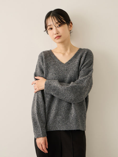 ●POINTウール混のふわっとエアリーなタッチ感のシンプルなボクシーフィットのVネックプルオーバーです。お顔まわりをすっきりと見せながら、かがんだ時にも胸元が気になりにくい浅めのVネックデザインです。キャミソール合わせなどでデコルテをほのかにのぞかせたり、シアーインナーなどをあわせたレイヤードスタイル、少し長めのインナーを仕込んで裾からのぞかせたレイヤリングにもおすすめです。ワイドパンツやフレアスカート、ナロースカートなど幅広いボトムスとバランスよくご着用いただけます。----------------------------------透け感:淡色のみややあり厚さ: やや厚い伸縮性:あり裏地: なしポケット: なし--------------------------------------------------------------------------------------------------洗濯方法家庭洗濯:液温は40℃を限度とし、手洗いができる。自然乾燥:日陰の平干しがよい。アイロン:底面温度120℃を限度としてアイロン仕上げができる。ドライクリーニング:石油系溶剤による弱いドライクリーニングができる。----------------------------------------------------------------■モデル身長 165cm 着用サイズ M※画像の商品はサンプルとなりますので実際の商品と仕様、加工、サイズが若干異なる場合がございます。※お客様のモニター環境により実際のお色と多少異なる場合がございます。※撮影状況や光の当たり具合により、色合いが異なって見える場合がございます。関連ワード:ketty ケティ レディース 新作 大人コーデ 2025秋冬 2025AW 秋冬 秋物 秋服 ニット ポリエステル レーヨン アクリル ウール ナイロン Vネック 長袖 オフィス 旅行 デート 通勤 ホテルディナー アフタヌーンティー