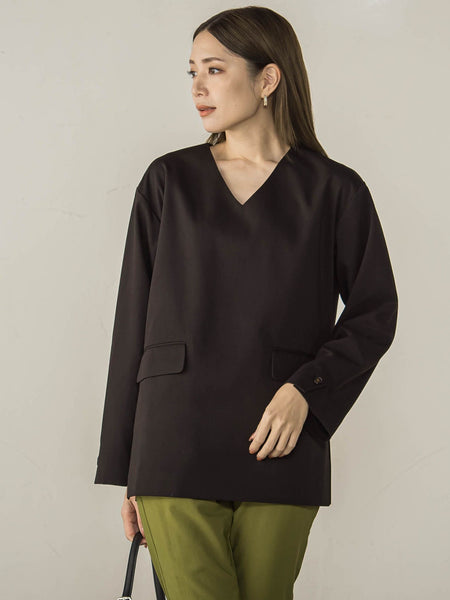 ウール調合繊のプルオーバーデザインジャケット(セットアップ可能)●POINTアウターを着用する時期のジャケットスタイルは動作性が鈍くなりがちに…を解消するプルデザインのジャケットです。ブラウス感覚で着用しながら、袖先のボタンデザインやポケットデザインでジャケットのような佇まいに。レイヤードでも、一枚着としても着用が可能です。同素材のパンツ(4110-49032)とスカート(4111-49022)の展開がございます。●FABRICメンズライクなウール調梳毛調合繊ツイルのテキスタイルを使用しています。●COORDINATEセットアップでの着用はもちろん、お手持ちのボトムとも合わせていただけます。ボックスシルエットでマニッシュなムードもあるので、あえてボトムはサテンなどのスカートでも◎。----------------------------------透け感:なし厚さ: 普通伸縮性:なし裏地: ありポケット: なし--------------------------------------------------------------------洗濯方法家庭洗濯:液温は30℃を限度とし、洗濯機で非常に弱い洗濯ができる。自然乾燥:日蔭の吊り干しがよい。アイロン:底面温度110℃を限度としてアイロン仕上げができる。ドライクリーニング:石油系溶剤による弱いドライクリーニングができる。----------------------------------※画像の商品はサンプルとなりますので実際の商品と仕様、加工、サイズが若干異なる場合がございます。※お客様のモニター環境により実際のお色と多少異なる場合がございます。関連ワード:ketty ケティ 2024秋冬 2024AW 秋冬 冬物 冬服 ブラウス ポリエステル レーヨン オフィス デート 通勤 ホテルディナー アフタヌーンティー ウォッシャブル